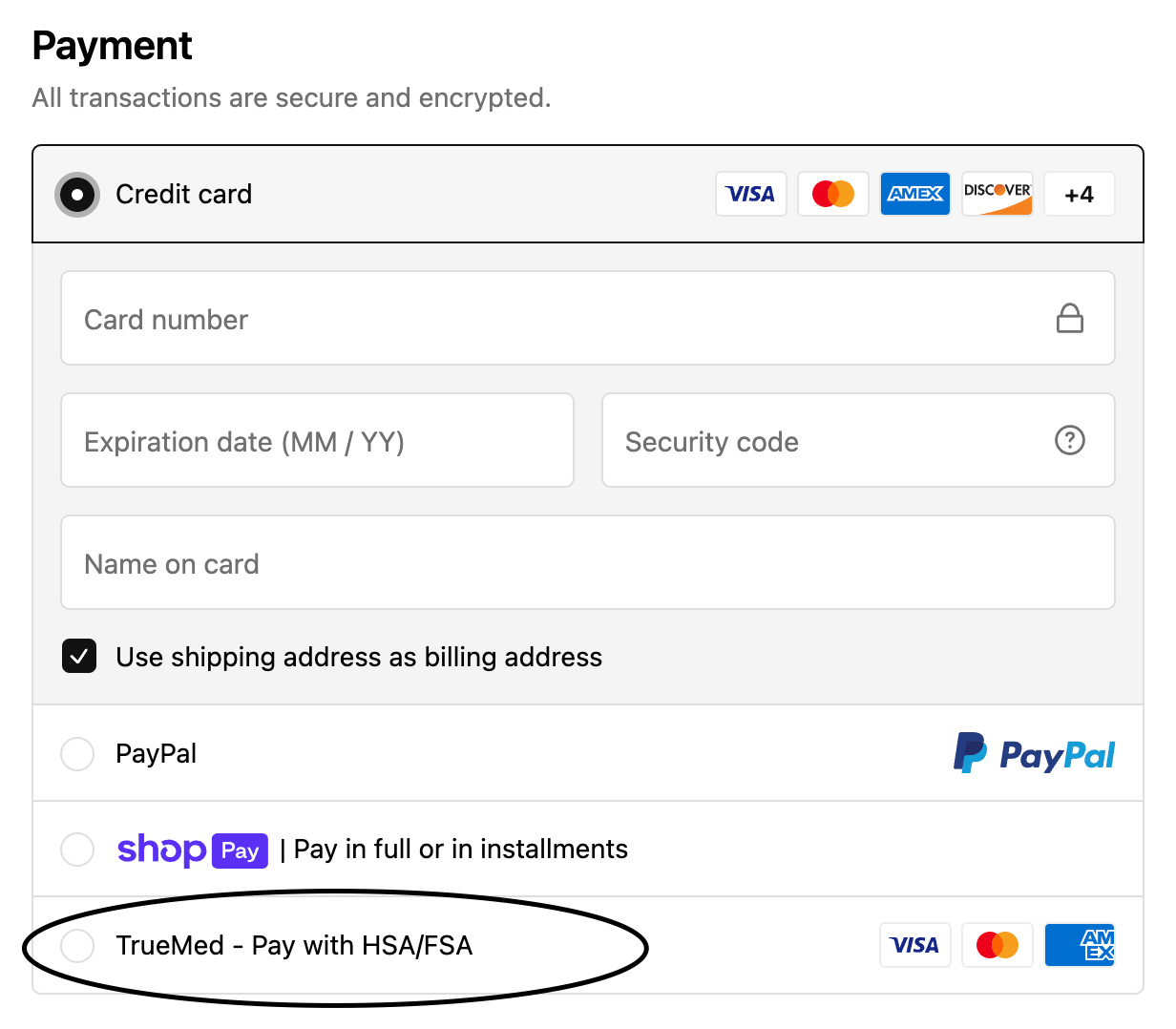 Step 3: Select TrueMed® as your payment option at checkout (see image below).